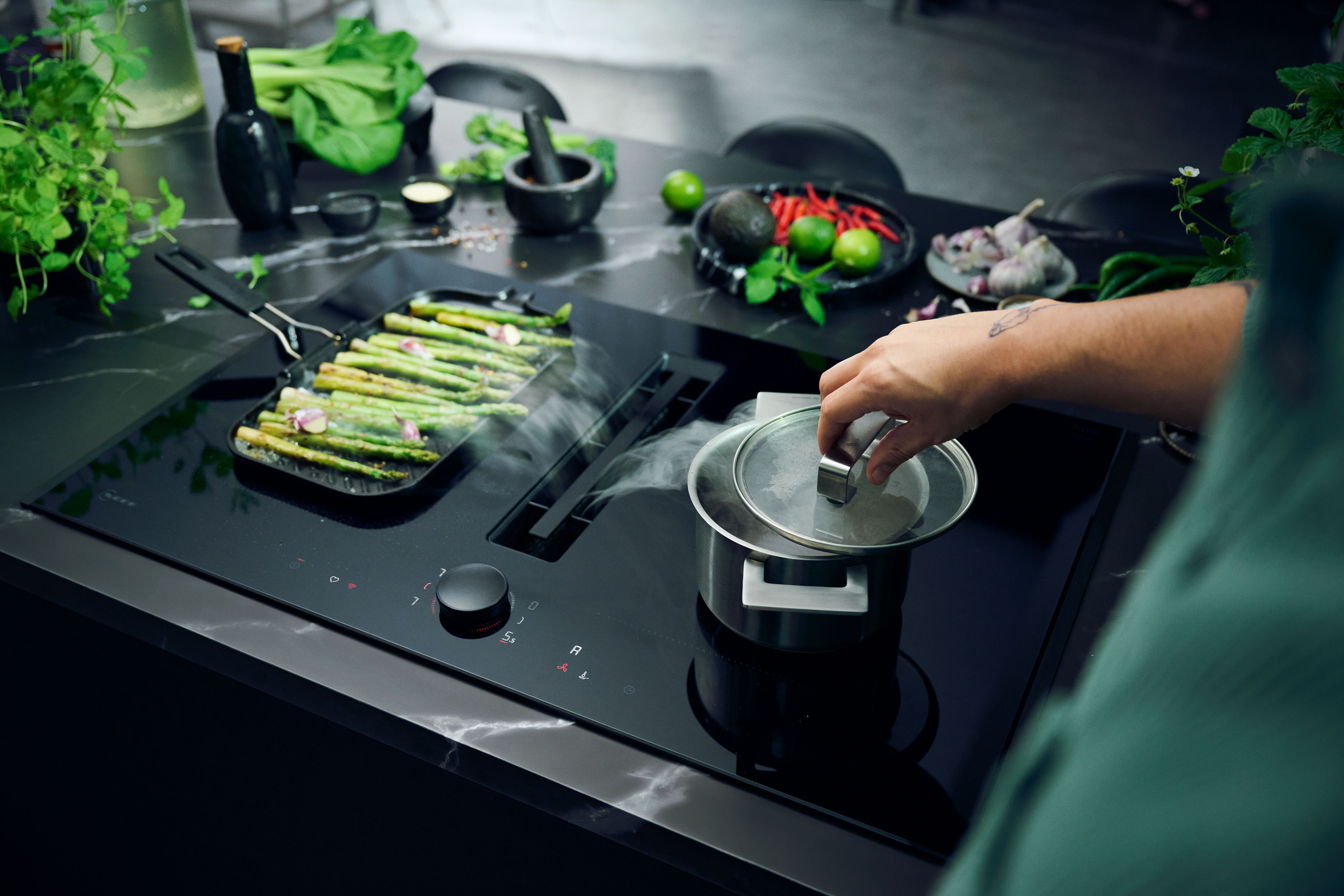 Extended Frying Sensor er en funktion i kogepladen, hvor man kan vælge mellem 11 forskellige temperatur indstillinger. Den går fra 70 grader hvor man bl.a. kan smelte chokolade og op til 220 grader som er perfekt til at brune kød eller fisk og skaldyr. Fordelen er at en sensor i kogezonen sørger for den korrekte temperatur så maden ikke brænder på. Og du kan selvfølgelig bruge det kogegrej du i dag bruger på induktion. Der er ikke noget der skal kobles op eller parres via bluetooth. Det er bare at sætte en pande på kogepladen og starte med at lave mad.