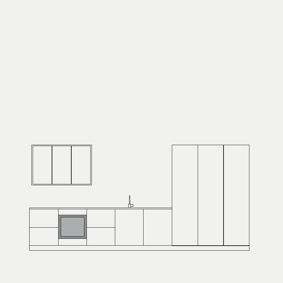 Grebet er den markante designdetalje. Vandrette linjer på de lave elementer og lodrette på de høje, giver de lange enkle træk, som virkelig definerer køkkenet.