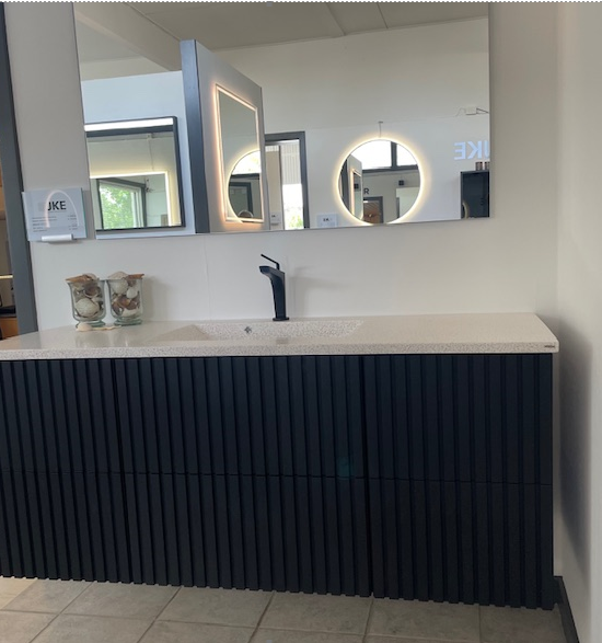 Nordic Nature sort eg. Helstøbt bordplade Graphalit Quarts 22 mm. Zenit skuffer. Incl. spejl og armatur.