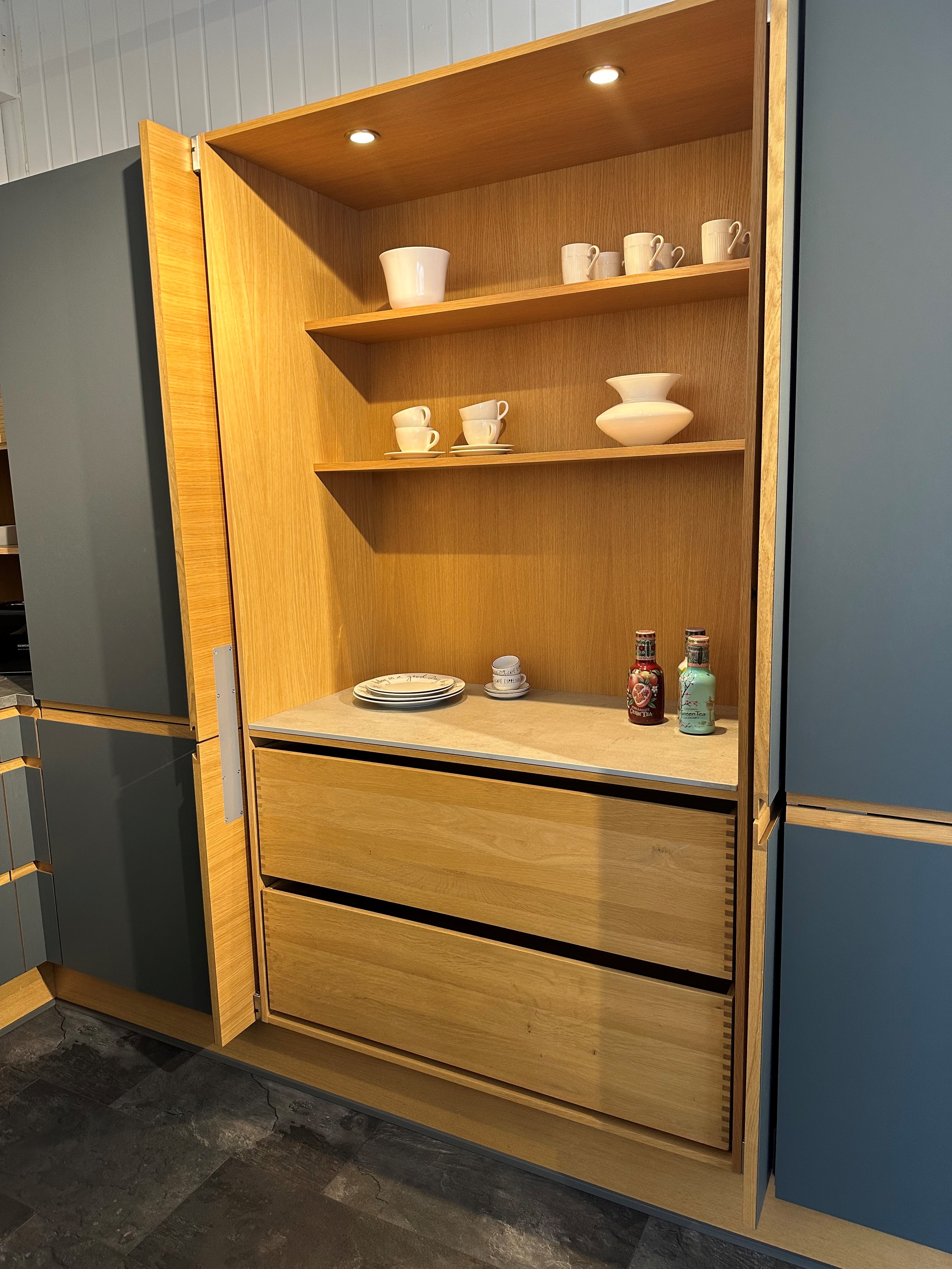 Bordplade 30 mm laminat 2384. Vask Lavabo Kubus 500 messing coating. Elementer, bordplade og vask (ekskl. hvidevarer, stænkpanel og armatur).