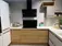 Lækkert moderne køkken i grå laminat og eg