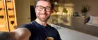 Se hvordan nyheten Nordic Cubic i fargen rosmarin på vakreste vis tilfører et moderne, men tidløst preg til hjemmet. De varme tonene skaper en innbydende og hyggelig atmosfære der det føles naturlig for paret å samles og dele øyeblikk sammen. Samtidig passer det vakkert sammen med stålbenkeplaten, de røde mursteinsveggene og det vakre tregulvet.