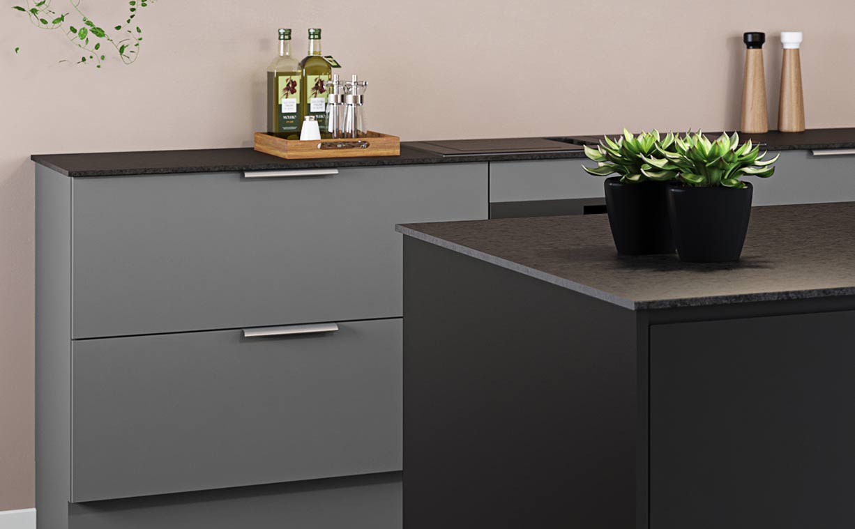 + Elegante antrasittgrå Zenit-skuffer til hele kjøkkenet