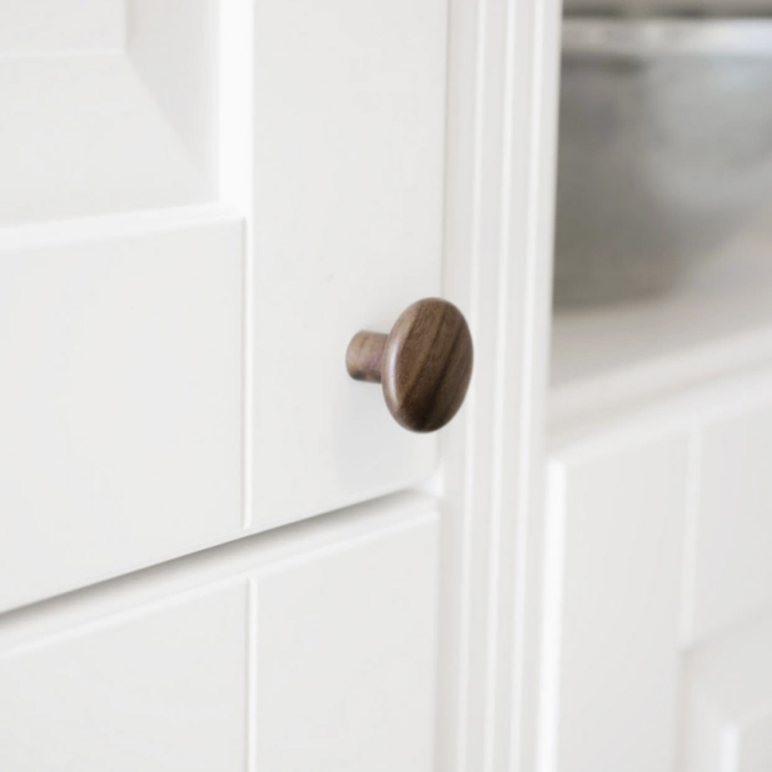 Stilren knott i tre til møbler, skuffer, dører og skap. Fås i tre utførelser: svart, eik og valnøtt.