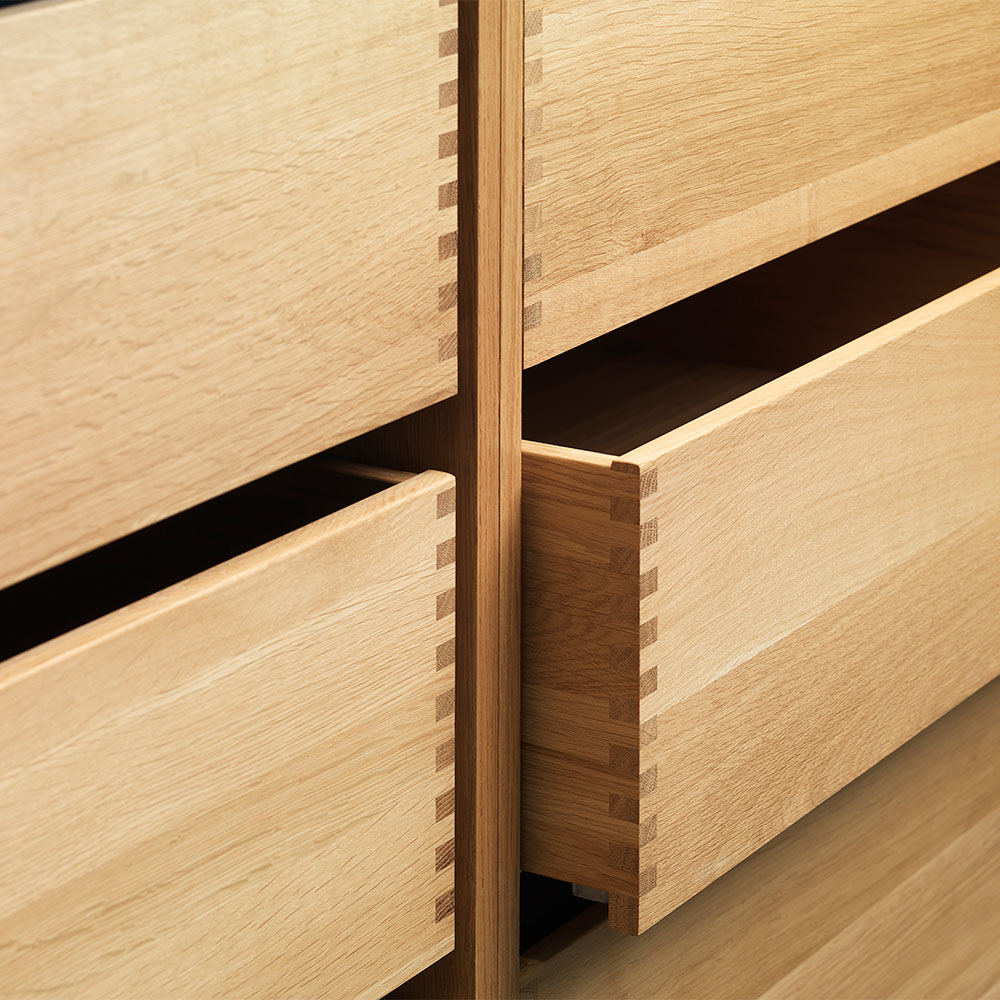 JKE:s sinkfogade lådor i massivt trä är helt unika på marknaden. Våra lådor är tillverkade av ekträ, och det hantverksmässiga förarbetet är så väl utfört att lådorna ofta används utan någon extra front.