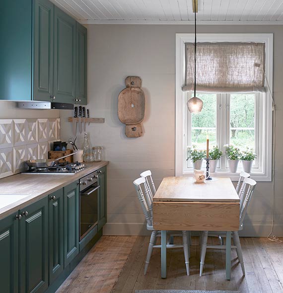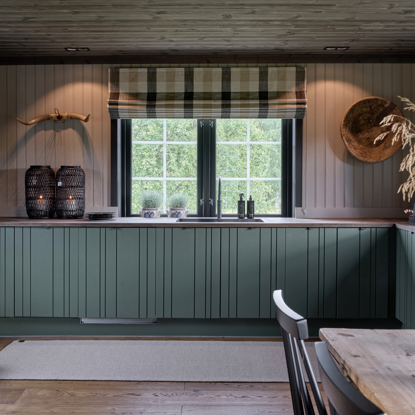 Här fick det gamla köket ett äventyrligt lyft med vår nyhet Nordic Vintage, som passar perfekt till det vackra naturområdet. Samtidigt skapar det en vacker kombination mellan det moderna och husets 1930-talsstil.