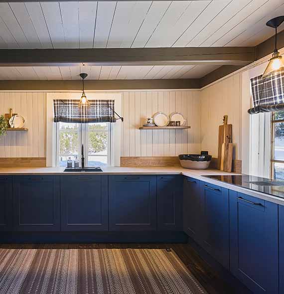 I den norska bergsbyn Vingelen moderniseras en gammal stuga. Köket får ett äventyrligt lyft med vår nyhet Nordic Vintage, som passar perfekt till det snötäckta landskapet och till Halvor Bakke och teamets önskan om att respektera stugans ursprungliga stil.