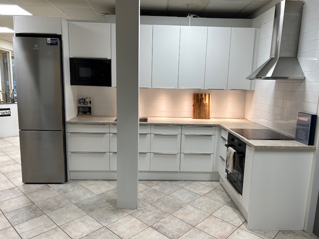 Nu säljer vi vårt uställningskök från JKE med luckan One line.